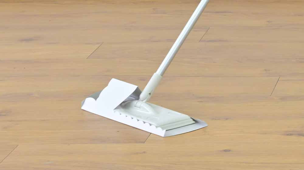 取り付はフロアモップを差し込むだけのワンタッチ!取り外しは足で踏んでもゴミ箱の上でふるい落とすことも可能なまさにノンタッチ